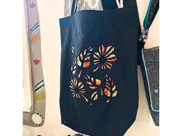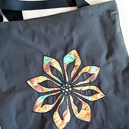 Join Claire Humphries who will guide you through the making of a simple tote bag with a stylish twist. Learn how to create a unique, reverse applique, decoration to pimp your simple and handy tote bag. The technique is simple but effective. The design, stitched on the black fabric of the bag, is cut away to reveal the patterned fabric behind and it’s a very cool effect – a perfect Christmas gift too!