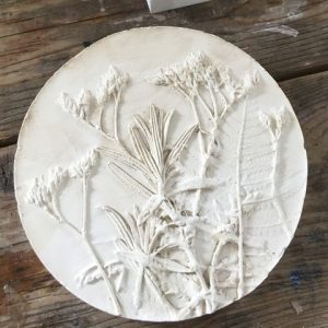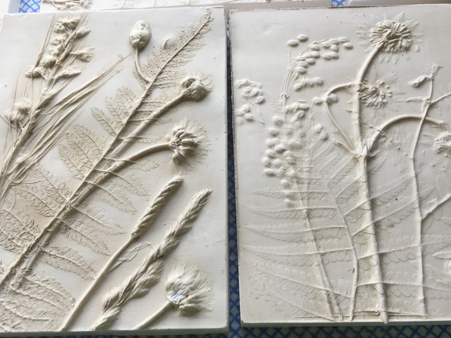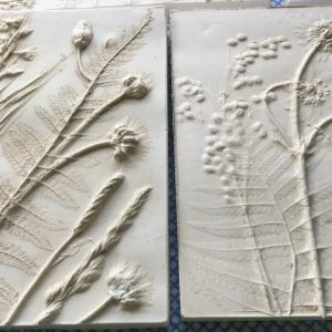 The course will cover rolling out the clay, designing and arranging the flowers and creating your own mould for the casting process. Over the course we will make two rectangular tiles approx. 7.5 x 5.5 inches in size.