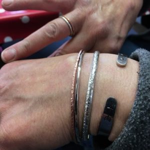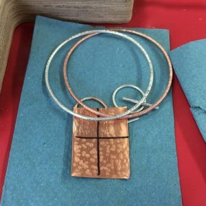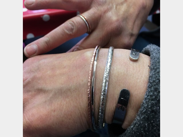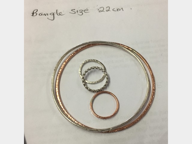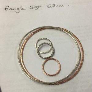 You will learn how to use a saw to cut simple shapes from silver – circles/teardrops etc. Then, using a range of different hammers, you will explore how to create different textures on the metal surface. Once you have some basic techniques, you will have the choice of making either a ring or bangle in copper. Once you have worked through the process in copper and feel confident, you will have the chance to replicate the design in silver. Alternatively, if you prefer, you can create a small charm to be added onto your copper bangle by saw piercing out a design of your own and adding texture.