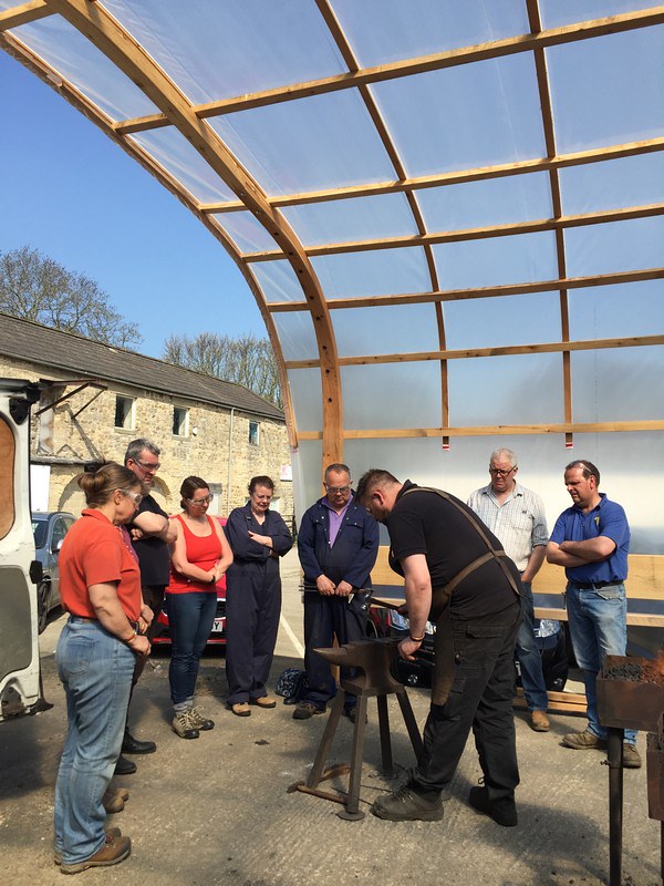 We will be working outside undercover. Although we have shelter, if you think the weather looks cold or wet please make sure you wear layers and a hat (although you'll be working hard over a hot forge of course). Working a forge means you will get very grubby so a hat is a good idea anyway.