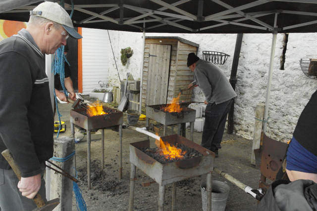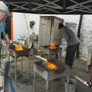 We will be working outside undercover. Although we have shelter, if you think the weather looks cold or wet please make sure you wear layers and a hat (although you'll be working hard over a hot forge of course). Working a forge means you will get very grubby so a hat is a good idea anyway.