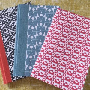 – A single section hardback notebook. Quarter bound in cloth, paper sides and cut flush edges.