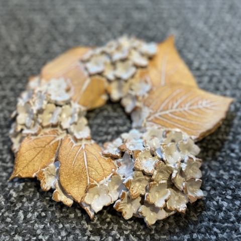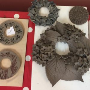 Design and make your own unique and beautiful hanging Christmas wreath from stoneware clay with Charlotte Morrison. Perfect to hang in a window, hook on a fireplace or on your tree. Make one large wreath of around 20cm diameter plus some smaller experimental practice pieces. You will learn how to plan your piece, prepare, roll, texture and cut the clay, fix leaves and other sculpted items to form the wreath and apply finishing touches.