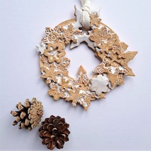 Design and make your own unique and beautiful hanging Christmas wreath from stoneware clay with Charlotte Morrison. Perfect to hang in a window, hook on a fireplace or on your tree. Make one large wreath of around 20cm diameter plus some smaller experimental practice pieces. You will learn how to plan your piece, prepare, roll, texture and cut the clay, fix leaves and other sculpted items to form the wreath and apply finishing touches.