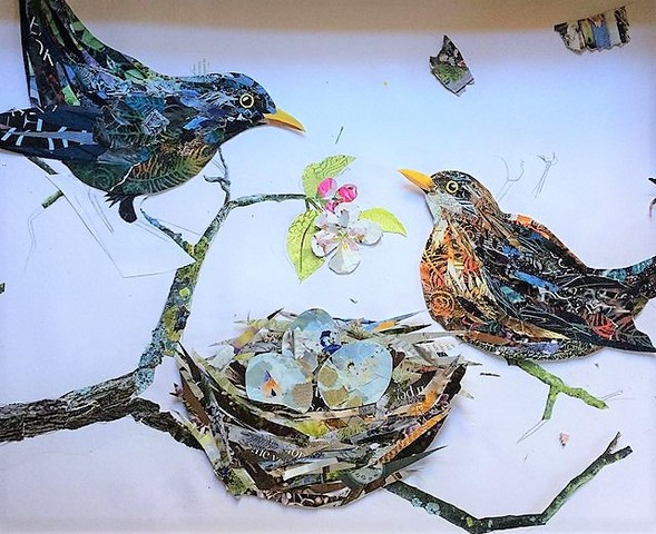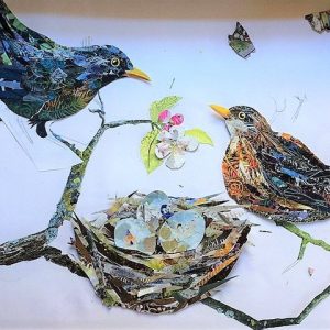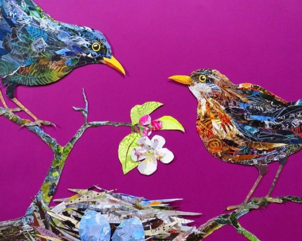 You will spend the morning exploring the composition and design of your piece and creating painted and printed papers to use alongside others from books, magazines, sheet music etc plus a few surprising natural elements.