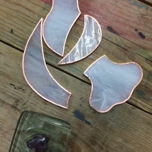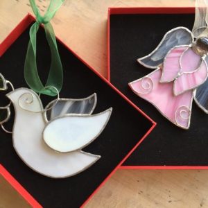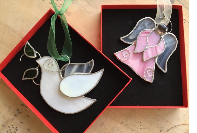 During this one day workshop you will make at least two decorations. You will learn to cut glass, foil and solder them, and finish them off with a ribbon to be used for hanging in the window or on the tree – or anywhere else!