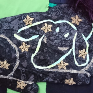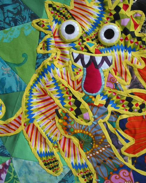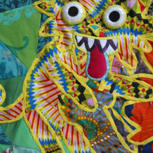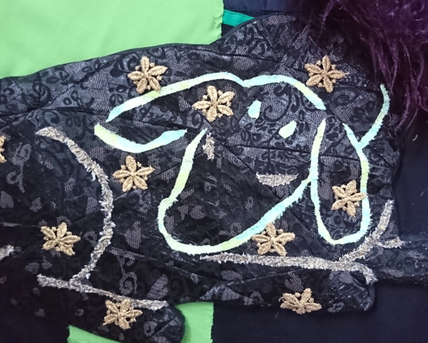 Once you have an idea of what you want your picture to look like, you will cut the pieces out of lovely recycled fabrics and sew them by hand onto a backing piece. Then it’s time to add embellishments and details to your heart’s desire!