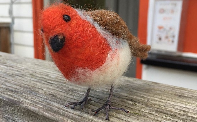 Have a stab at this – needlefelt robins for the festive season. They work as Christmas tree baubles, gifts or decorations.