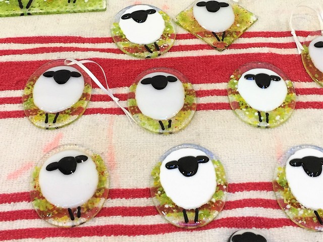 Everyone loves glass – the gorgeous colours and the effect of the light streaming through it. Fused glass has a particular quality – the shapes are softened, melted and fused when compatible glass is compiled and fired in a kiln. On the workshop with Dave Teece, you will exploit the quality of the glass to create fun fused glass decorations inspired by sheep! You will create your stylish designs under Dave’s guidance, and incorporate various techniques to create shapely sheep.