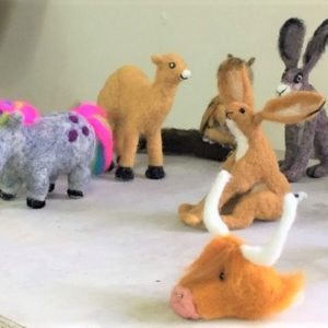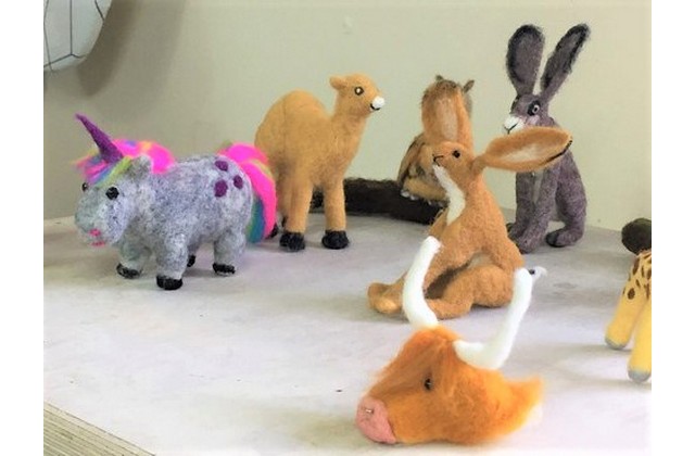 Have a stab at this! Needle felting is a fascinating technique which allows you to sculpt carded wool into three-dimensional objects. It lends itself very well to animal sculpture as the results are soft and tactile. In this one day class with Susie Walker you will learn about the different needles and fibres that can be used, practise the basics and use those skills to make your own 100% needle felted animal using locally sourced fleece, coloured New Zealand and Merino wool, beads and specialised felting needles.
