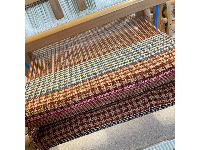 Come and enjoy a wonderful day of weaving with Jan Beadle on a 4 shaft table loom. Learn how to weave a classic Dogtooth and 4 shaft pinwheel pattern. Whether you’re a beginner or already a weaver, this will be a lovely opportunity to experiment and go home with a gorgeous Dogtooth classic tweed item. Jan will even take the mystery out of pattern reading.