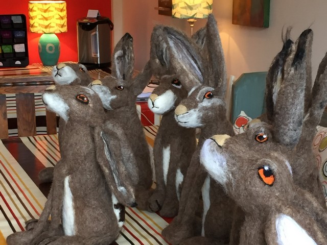 If you loved Annis’s needlefelt Herdwick sheep doorstop, you’ll love this gorgeous hare. He’s a large scale needlefelt hare but not as hefty as the sheep so not suitable as a doorstop.