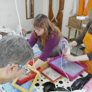 Explore some of the techniques involved in making fabulous handmade paper from scratch – make 10 sheets of paper with many different effects then gain ideas and techniques for using them. In the morning you will work on a various projects using different handmade papers, then in the afternoon you’ll learn how to make your own.