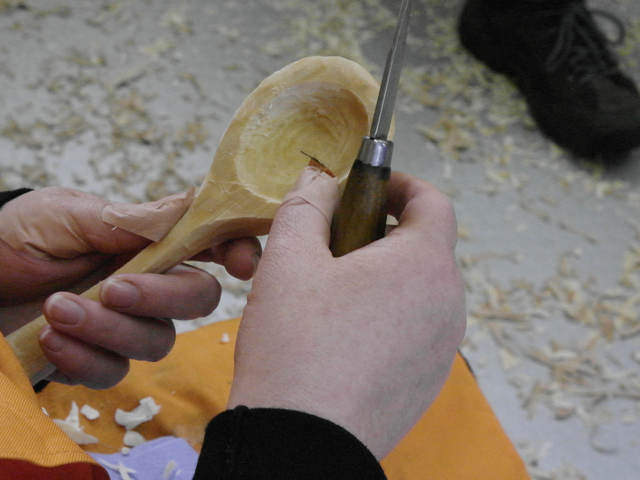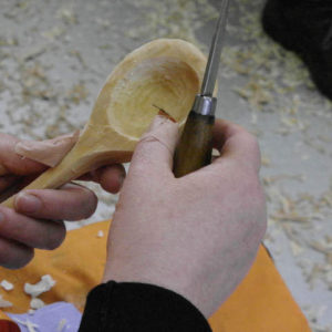 Start knife carving in wood – it’s amazing what you can do with just a small axe and a couple of knives. Working with green unseasoned wood you will learn to use really simple tools to carve and whittle using techniques that are almost like drawing in wood. Learn these lovely relaxing techniques using the most basic tools – with no power tools you’ll enjoy the freedom of simple carving. The techniques learned will be used to create a simple piece – a fine wooden spoon. This means you get time to relax and develop the basic knife skills to enable you continue to develop this addictive hobby.