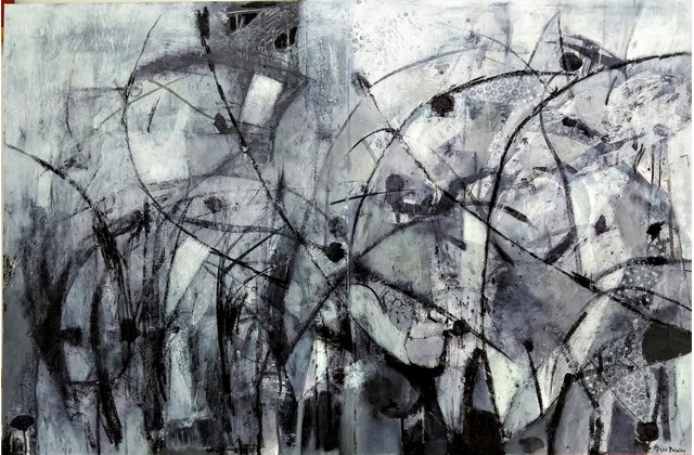 Big, bold experiements in B&W…this is experimental and abstract Mixed Media in Monochrome with artist Jane Burnley.