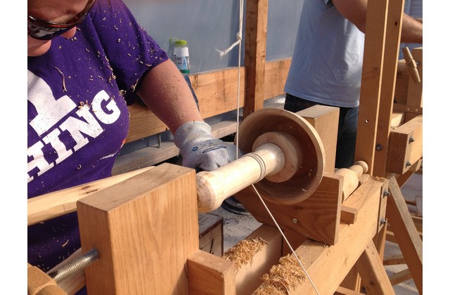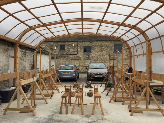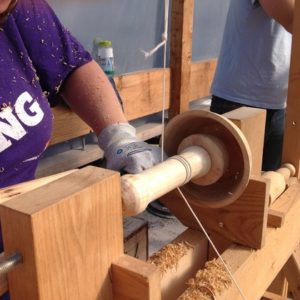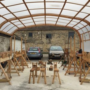 Please note that a good general level of health and physical fitness is required for pole lathe workshops but turning bowls is particularly strenuous so expect a high energy workout. As the workshop is fairly energetic, turning outdoors is preferable – this workshop will take place beneath our shelter. If it rains we will be dry but you might like to wear layers that you can remove depending on the temperature.