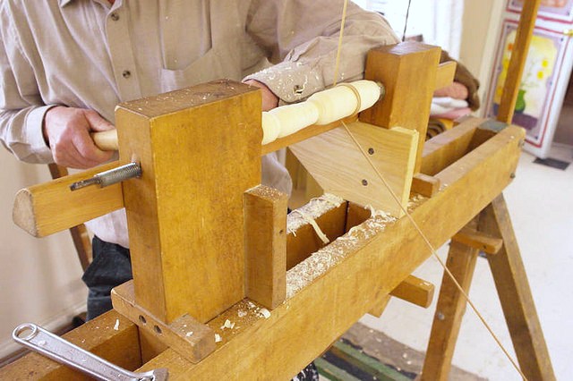 Each participant will have their own lathe and set of tools to work with, and chopping blocks and shave horses will be shared.