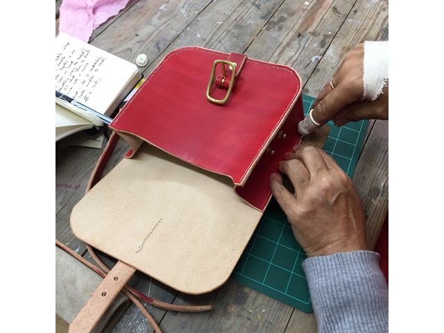 You can choose to make your bag using the natural leather colour or Ruth has a selection of water based dyes available – for example, grass green, brick red, yellow ochre or conker brown.