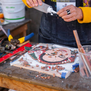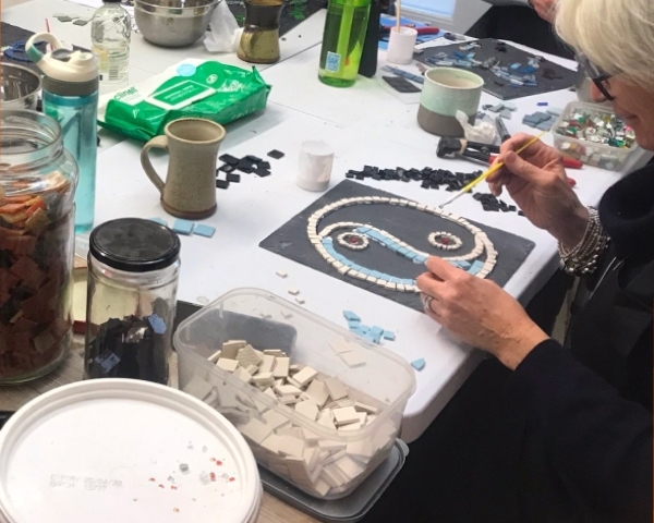 The first hour will be spent deciding on and transferring your design onto the slate provided – the difficult bit will be choosing your colour palette from the many tesserae available! Then our expert tutor Ruth Wilkinson will take you through the cutting techniques before you begin your creation. Once the mosaic is complete you will then grout the pieces ready to take home.