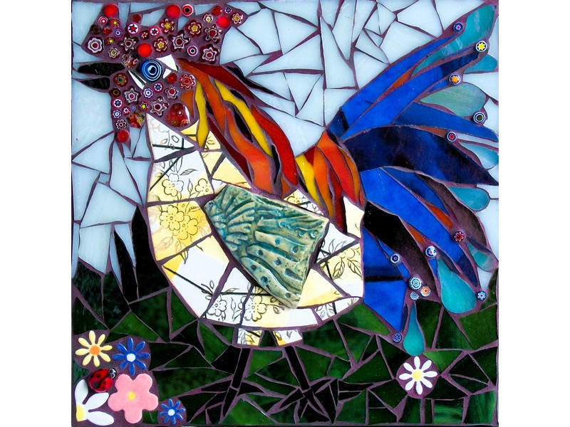 The Rooster is a stunningly beautiful bird of rich, glossy colours, often symbolising confidence, good luck and protection. In this workshop with mosaic artist Julie Hand, you will create your very own regal looking Rooster in Picassiette, using a wonderful array of stained glass, broken crockery, jewellery, beads and millefiori.