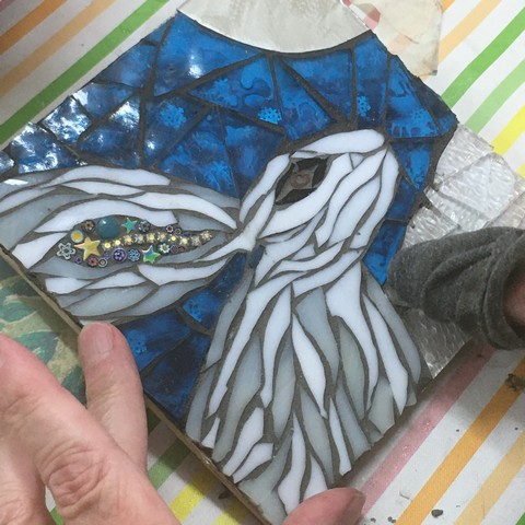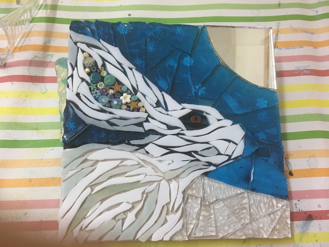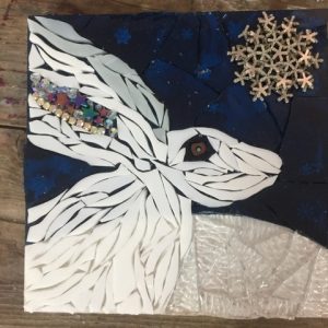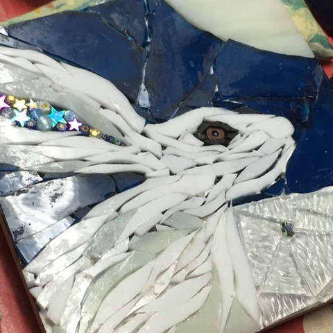 Spend a fantastic day with Julie, learning the essentials of working with mosaic to create a mosaic snow hare. Using the cool colours given, create your own Mountain Hare using glass of varied shapes and textures over a painted background.