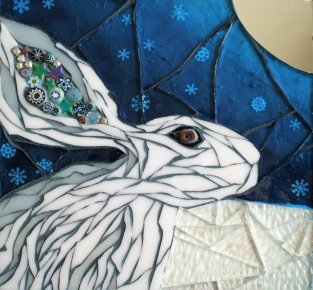Spend a fantastic day with Julie, learning the essentials of working with mosaic to create a mosaic snow hare. Using the cool colours given, create your own Mountain Hare using glass of varied shapes and texture over your own designed and painted background.