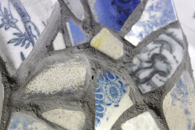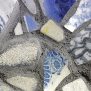 Picassiette is from the French phrase ‘Pique – Assiette’, meaning ‘stolen from plate’ and is a wonderful way of using up broken/damaged ceramics and china, old unused tiles and other ephemera such as jewellery, buttons and shells.