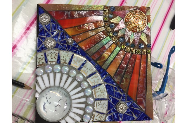 – Select and use a variety of materials such as tiles, stained glass, china into your design