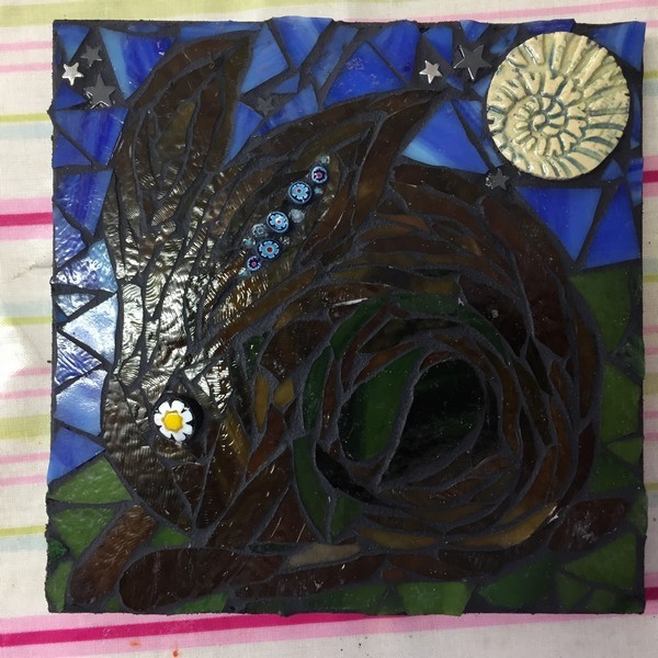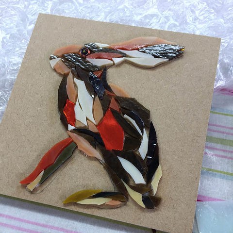 Spend a fantastic day with Julie, learning the essentials of working with mosaic to create a mosaic hare. Depict your Hare leaping, dancing or turning its face to the sun amongst the Summer flora and fauna, wheat fields or grasslands of the countryside. Whichever hare you love, create it with glass, tiles, and other jewel-like materials.
