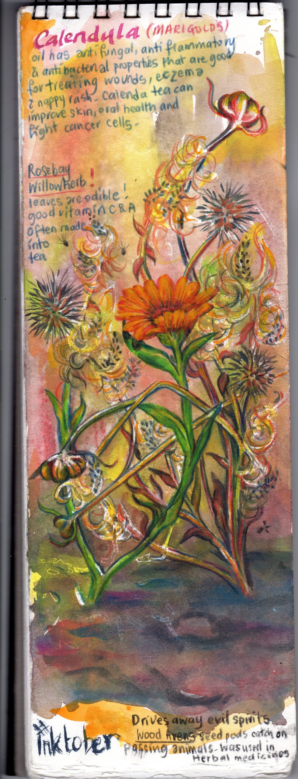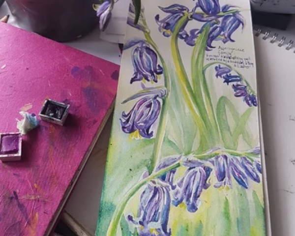 Over the day you will take a few trips outdoors to sketch in nature, using different surfaces and materials (shown in each demonstration). We will record the local area with annotated illustrated pages. Using different illustration styles for each page you will work with inks, pencil crayon, charcoal, pastels and also watercolours. This course will fill you full of ideas and a passion for nature art journaling.