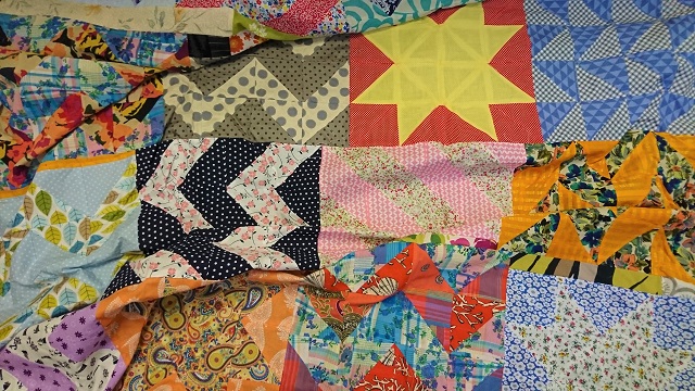 Bring as many pairs of 9″ squares of fabric (ie 2 squares OF THE SAME FABRIC) as you like – cottons are the easiest to use. If you have the squares precut it will speed you up on the day but equally not a problem to do during the session.