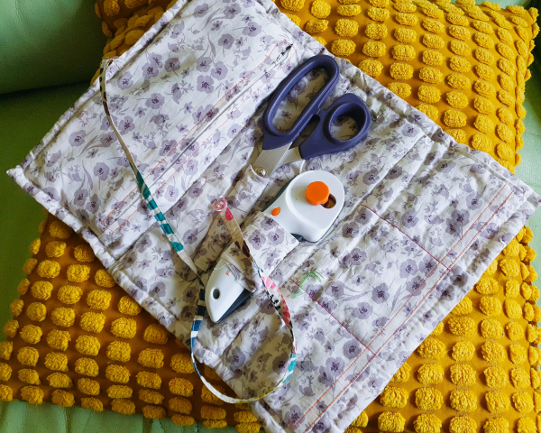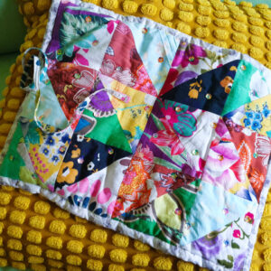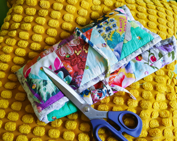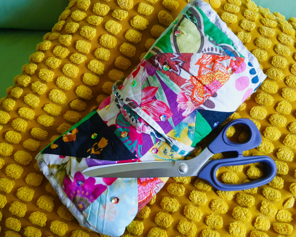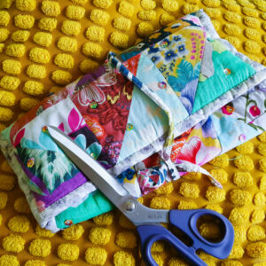 Your patchwork sewing roll can be done entirely by hand but a machine will speed things up for you. If you don’t have a sewing machine and you’d like to use one let us know as we do have one at ArtisOn that you could use.