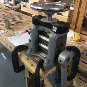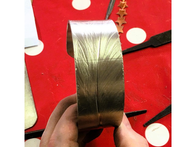 Join Ella to create your own pewter jewellery such as earrings, bangles, pendants and brooches (approx 3-4 finished items). Using lead free pewter we will apply texture and pattern to the metal using a traditional jewellers rolling mill – a tactile and addictive process. Please feel free to bring along any textures under 5mm in thickness to try. Items such as lace, dried leaves/flowers (green fresh flowers and leaves don’t work), paper stencils or mesh packaging. Ella will also have a lot for you to use if you don’t bring any.