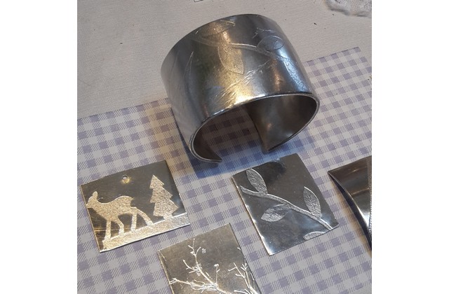 Join Ella McIntosh to create your own stunning pewter jewellery. During this workshop you will be using a traditional jeweller’s rolling mill to add texture and pattern to pewter with items such as lace, dried flowers, paper stencils and feathers. Using saws, hammers, solder and rivets you will shape the beautifully textured metal to create your range of jewellery….from bangles and brooches to pendants or statement earrings.