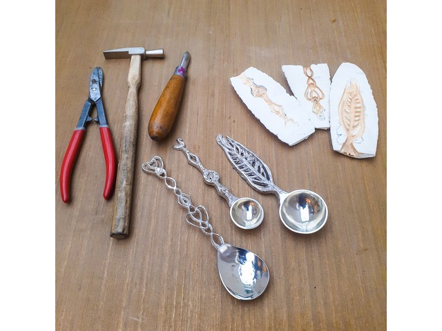 Ella will guide you through the day using both sheet metal and casting techniques so you use a wide variety of skills. We will start the day creating your spoon bowl using sheet pewter with forming techniques using doming blocks and hammers . Following this we will carve a cuttelfish mould for the handle of the spoon before casting with molten pewter, a technique that produces beautiful tactile results. We will the solder the spoon bowl and handle together before finishing your designs with a polish.