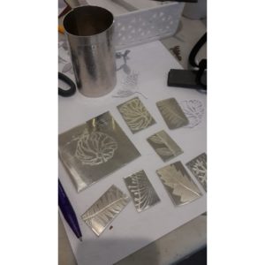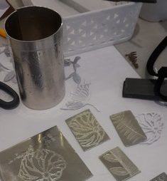 Ella encourages you to bring along interesting textures (fairly flat items less than 5mm high such as lace and doilies work well) to experiment with alongside the materials provided. This is a great workshop even if you have done cuttlefish casting in pewter as it shows a completely different way of pewtersmithing using sheet metal.