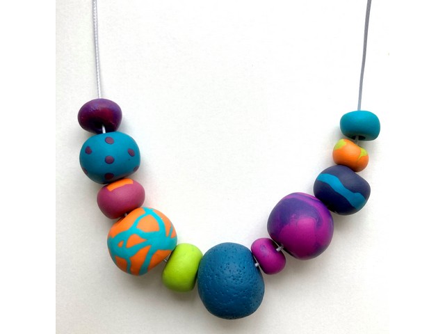 Make a stunning, unique bead necklace in Polymer clay (common make – Fimo). This wonderful plastic type ‘clay’ comes in bright vibrant colours, good to handle and is baked hard in a domestic oven. It is easy to use at home and you can produce high quality individual pieces very quickly. Jane’s guidance on the use of colour and techniques for combining colours will ensure you go home with an attractive, statement necklace. There will be a good range of colours available, so you can choose colours to suit your wardrobe!