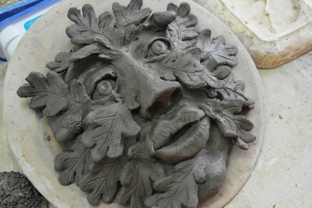 The Green Man has appeared all over the world in sculptures, drawings and other images. Usually shown with branches or vines sprouting from his nose, mouth, and other parts of his face, he is steeped in folklore. Sculpt your own Green Man plaques with ceramic sculptor, Iris Wilkinson.