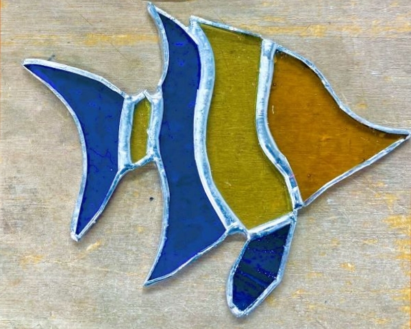 During this one day workshop you will make a fabulous fish – perhaps a shoal, depending on size! You will learn to cut glass, foil and solder them, then finish them off ready for hanging in the window or even outside on a tree!