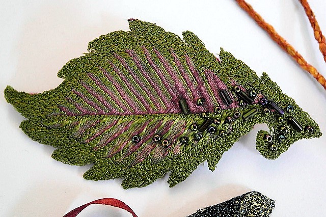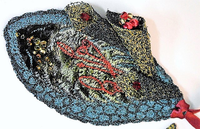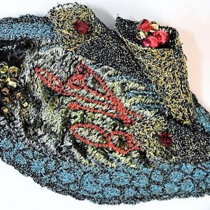 During this one day workshop with Claire Humphries, you will be using several types of dissolvable fabric and free motion machine embroidery techniques to experiment with stitch. You should already have some freehand machine embroidery experience before attending this workshop. You will work with shear fabrics to create a flower and other small projects using stitch alone.