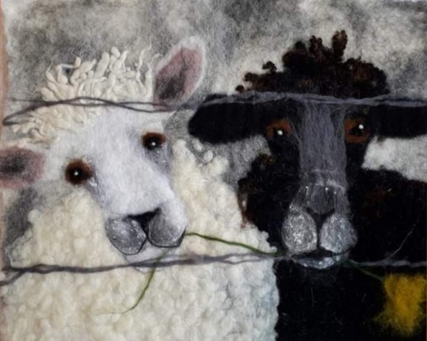 If you love sheep and the beautiful look and texture of wool, in this workshop, Liz Emery literally combines the two! You will learn the basic wet felting method and at the same time be guided by Liz to produce a striking sheep picture made from Merino wool fibres.