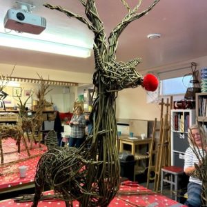 Willow sculptor Leilah Vyner will guide you through this intensive day of willow weaving. You will create a beautiful festive reindeer to take home and install in the garden or indoors. You will learn techniques and tips to help you work with willow, including