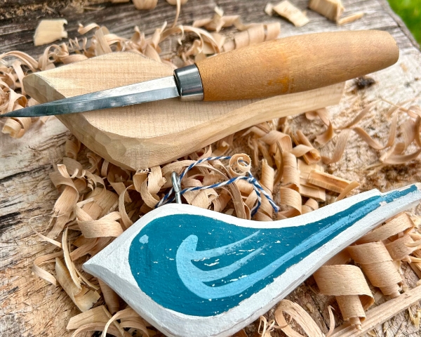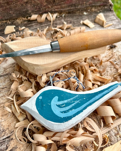 During the first half of the day you will carve two bird decorations from lime wood blanks. Safe knife techniques will be demonstrated and tools and material choices discussed.
