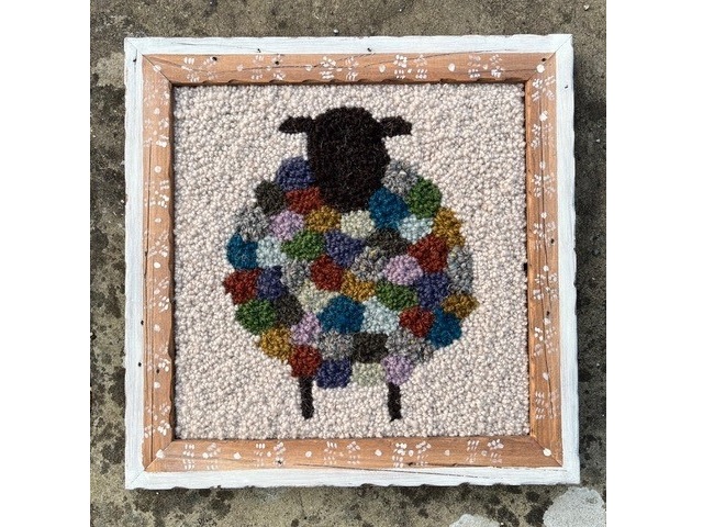 Using a custom made hooking frame, which is yours to keep, you will start the day learning this simple hooking technique on a sample piece of hessian. Once you feel you have mastered the technique, you can choose colours for your sheep and start hooking your picture. No need to worry about the design as Carole’s kit includes the basic design. Once you get into the swing of yarn hooking, it can be the most relaxing and therapeutic process. You won’t finish the picture on the day but you will certainly have all the knowledge and materials to complete the design at home. You’re technique will improve and you’ll pick up speed throughout the day and have the skills you need to create your own designs at home.